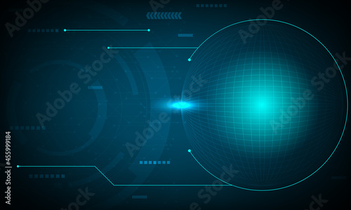 Blue redial technology background with line and dot connection. Geometric and particle of communication on cloud internet. Cumputer futuristic cyber space.