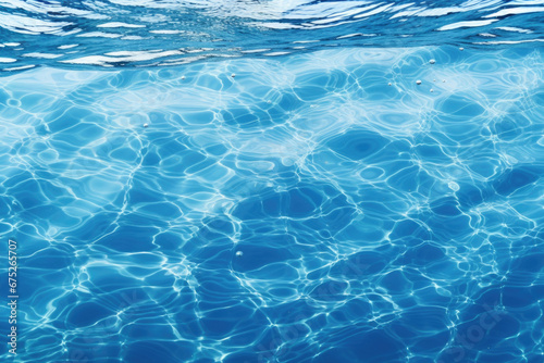 Blue sea water surface with sun glare and ripple background
