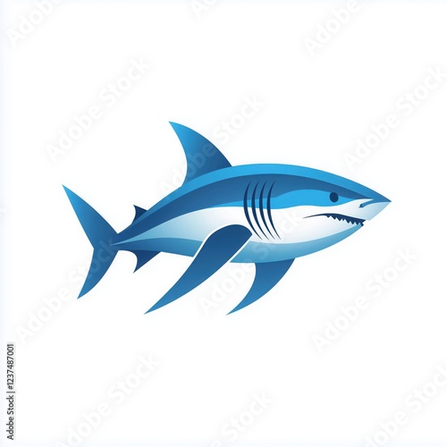 Blue shark digital illustration, sleek and fierce, minimalist design on white background