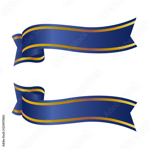 Blue shinny banner ribbon with golden strips