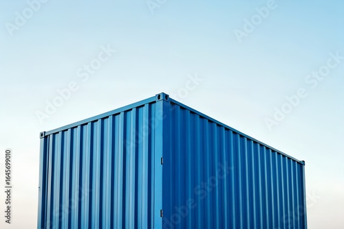 Blue Shipping Container Against Clear Sky – Logistics, Supply Chain, Industrial, Freight, Infrastructure, Minimalism