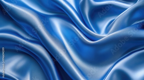 Blue silk backdrop featuring folds Abstract texture highlighting a rippled satin surface