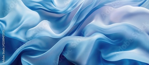 Blue silk fabric texture with waves and folds suitable for use as a background with copy space