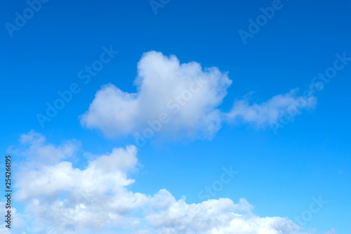 Blue sky and fluffy cumulus white clouds North Sea island.