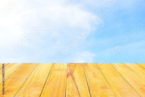 Blue sky and white clouds for background.wood background.