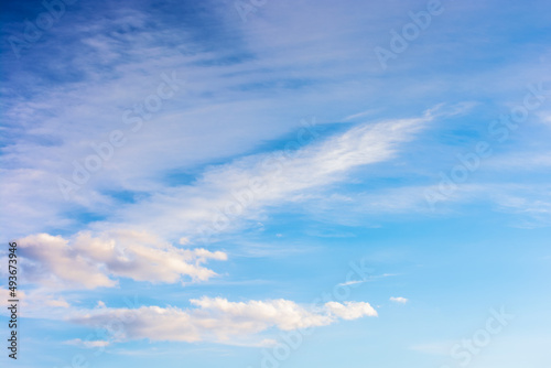 blue sky and white clouds on a windy weather. atmosphere air freedom concept. nature series in spring. creative gradient background for installation and design