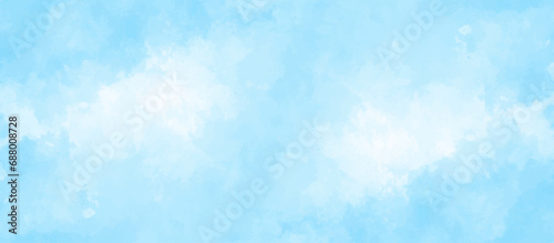 Blue sky background with white fluffy clouds .hand painted abstract soft sky blue watercolor .Stain artistic vector used as being an element .Watercolor illustration art marble painting abstract blue.