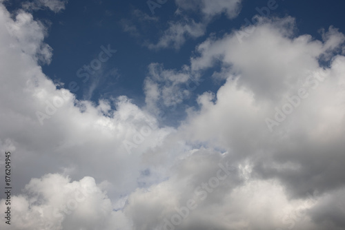 Blue sky. Beautiful Cumulus clouds flying across the sky,