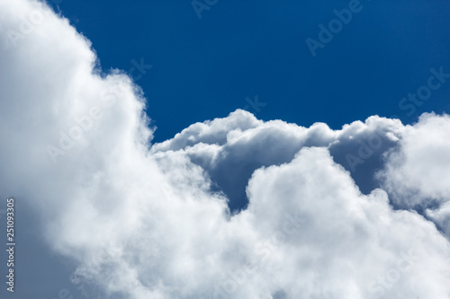 Blue sky covered in large puffy cumulonimbus cloud formations