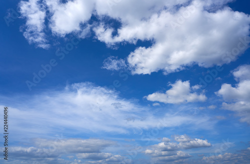 Blue sky white summer cumulus clouds