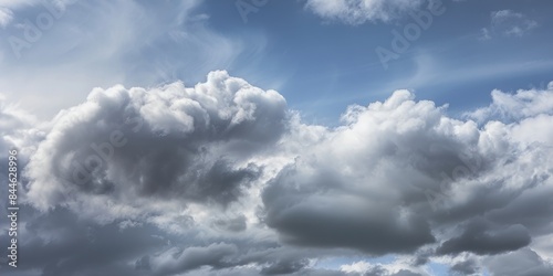 Blue sky with beautiful cumulus clouds, perfect for nature and weather photography.