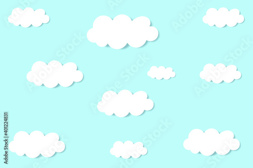Blue sky with clouds, vector seamless pattern. Abstract white cloudy set isolated on blue background. Vector illustration