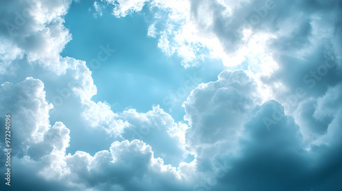 Blue Sky with Fluffy White Clouds and Sunlight Breaking Through