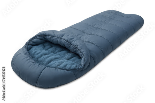 Blue sleeping bag for camping and hiking, providing warmth and comfort during outdoor adventures, ready for travel and trekking