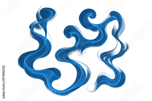 Blue smoke creating abstract shapes on a transparent background, ideal for graphic design projects