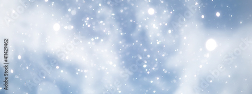 blue snowfall bokeh background, abstract snowflake background on blurred abstract blue