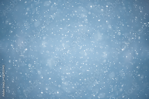 blue snowfall bokeh background, abstract snowflake background on blurred abstract blue