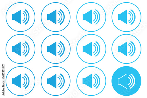 Blue Speaker Icons in a Pattern with One Different Color Pop Sound Symbol Graphics