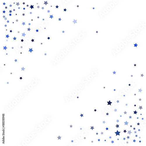Blue Stars Confetti, Minimal Sparkling Vector Background. Premium Christmas Magic Glitter, Lights. Falling Blue Stars Confetti for Ads, Posters, Gift Cards Pattern. New Year Festival Garland Firework