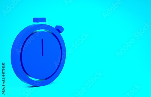 Blue Stopwatch icon isolated on blue background. Time timer sign. Chronometer sign. Minimalism concept. 3d illustration 3D render.