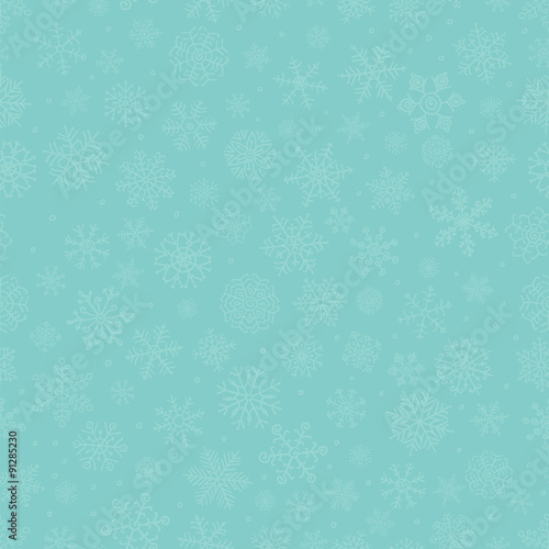 Blue Subtle Winter Snow Flakes Doodle Seamless Background