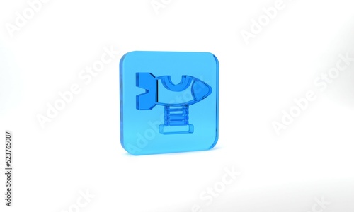 Blue Swing plane on the playground icon isolated on grey background. Childrens carousel with plane. Amusement icon. Glass square button. 3d illustration 3D render
