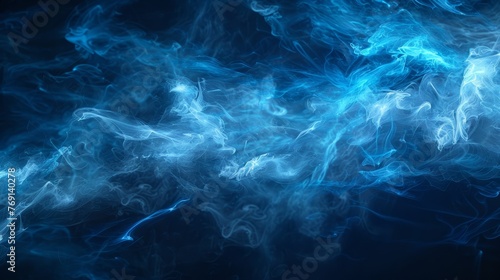 Blue Swirling Smoke Wind Effect with Black Background Generative AI