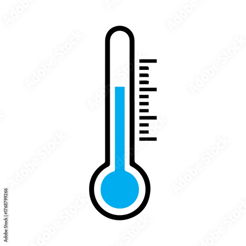 Blue thermometer showing cold temperature isolated on white background, winter weather symbol, freezing climate and low temperature concept, cold forecast illustration for weather or climate design