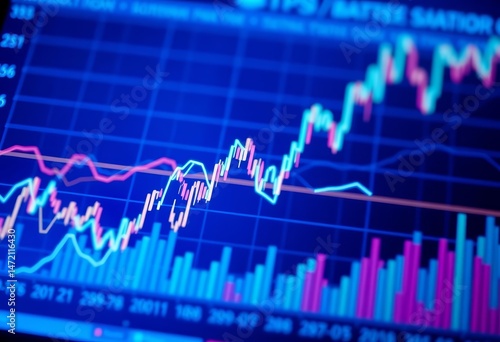 Blue toned graph depicting financial data and business analysis with stock market report, background, bear market