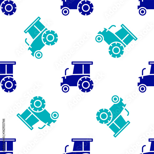 Blue Tractor icon isolated seamless pattern on white background. Vector.