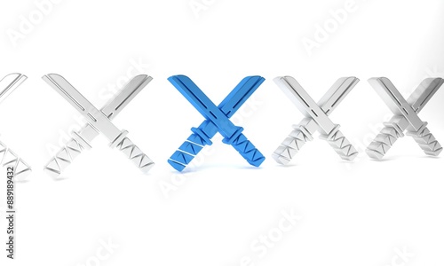 Blue Traditional Japanese katana icon isolated on white background. Japanese sword. Minimalism concept. 3D render illustration