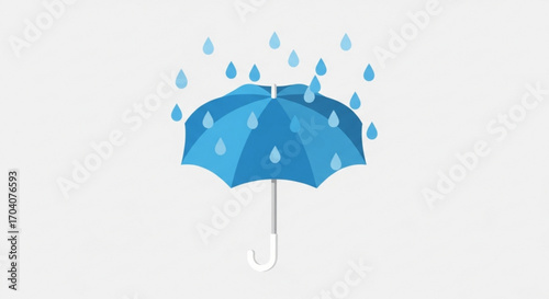 Blue umbrella with raindrops falling, symbolizing protection from the rain, a simple and clean vector illustration