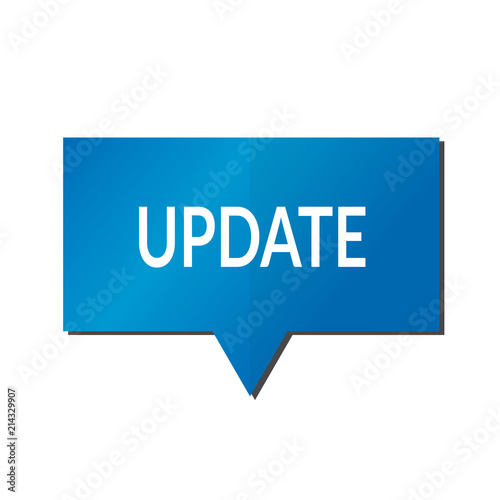 Blue update speech bubble on white background