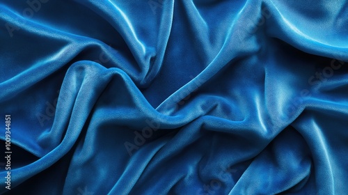 Blue velour fabric with folds background. Blue velvet, velor fabric background.