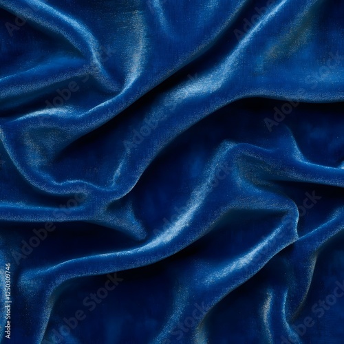 Blue Velvet Luxury Fabric Flowing in Elegant Drapes Texture Background