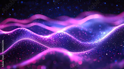 Blue violet shiny sparkling background with bokeh lights and smooth lines for glowing vector design. Coach motivating personal development for leadership and success in growth and self-improvement.