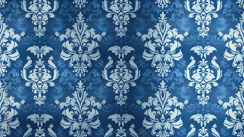 Blue wallpaper with damask pattern background,
