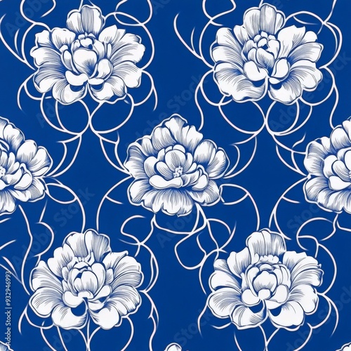 blue wallpaper with pattern flowers