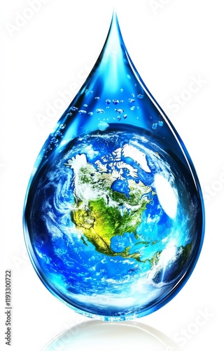 Blue Water Drop Encapsulating Earth Digital Composition, Planet Earth, Water Conservation, Global Issues Water Conservation, Global Issues