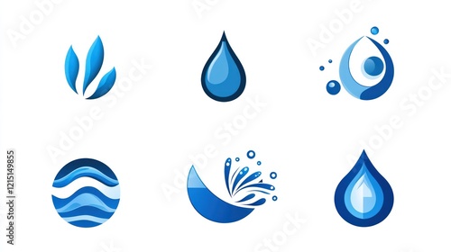 Blue water drop logos; design elements for eco, health, purity