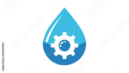 Blue Water Drop with White Gear Inside Clean Tech Icon