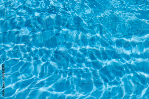 Blue Water Pool Surface with Sunlight Reflections