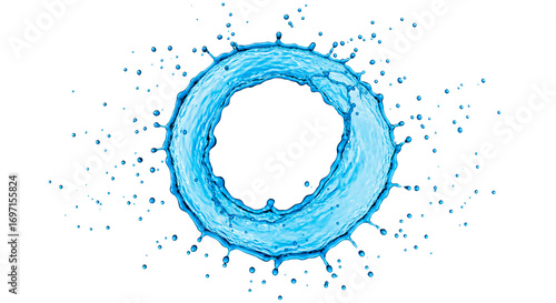 Blue water splash crown, water ring on a white background
