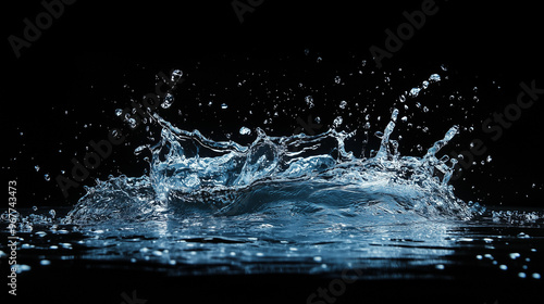 Blue water splash isolated on black background. isolated on a solid black background. Illustrations