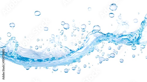 Blue Water Splash with Bubbles Isolated on White