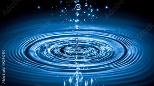Blue Water Splash with Ripples, Close-Up. Minimalist Abstract Background With Fluid Drops Texture