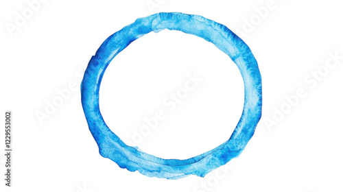 Blue watercolor circle on transparent background creating empty space. Transparent background