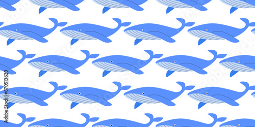 Blue whale seamless pattern. Sea animal. Undersea life. World whale day. Save the ocean. Defense day. Background, banner, digital paper.