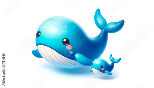 Blue whales, mother and calf, swimming together in the ocean. Concept: marine life, wildlife conservation. Suitable for eco-friendly businesses, World Oceans Day, environmental awareness campaigns. Co