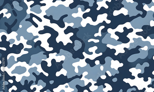 Blue White Camouflage Pattern Military Colors Vector Style Camo Background Graphic Army Wall Art Design